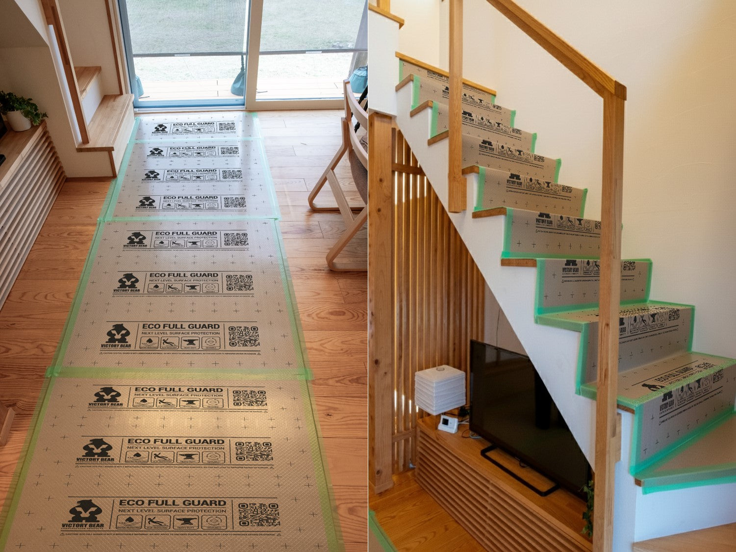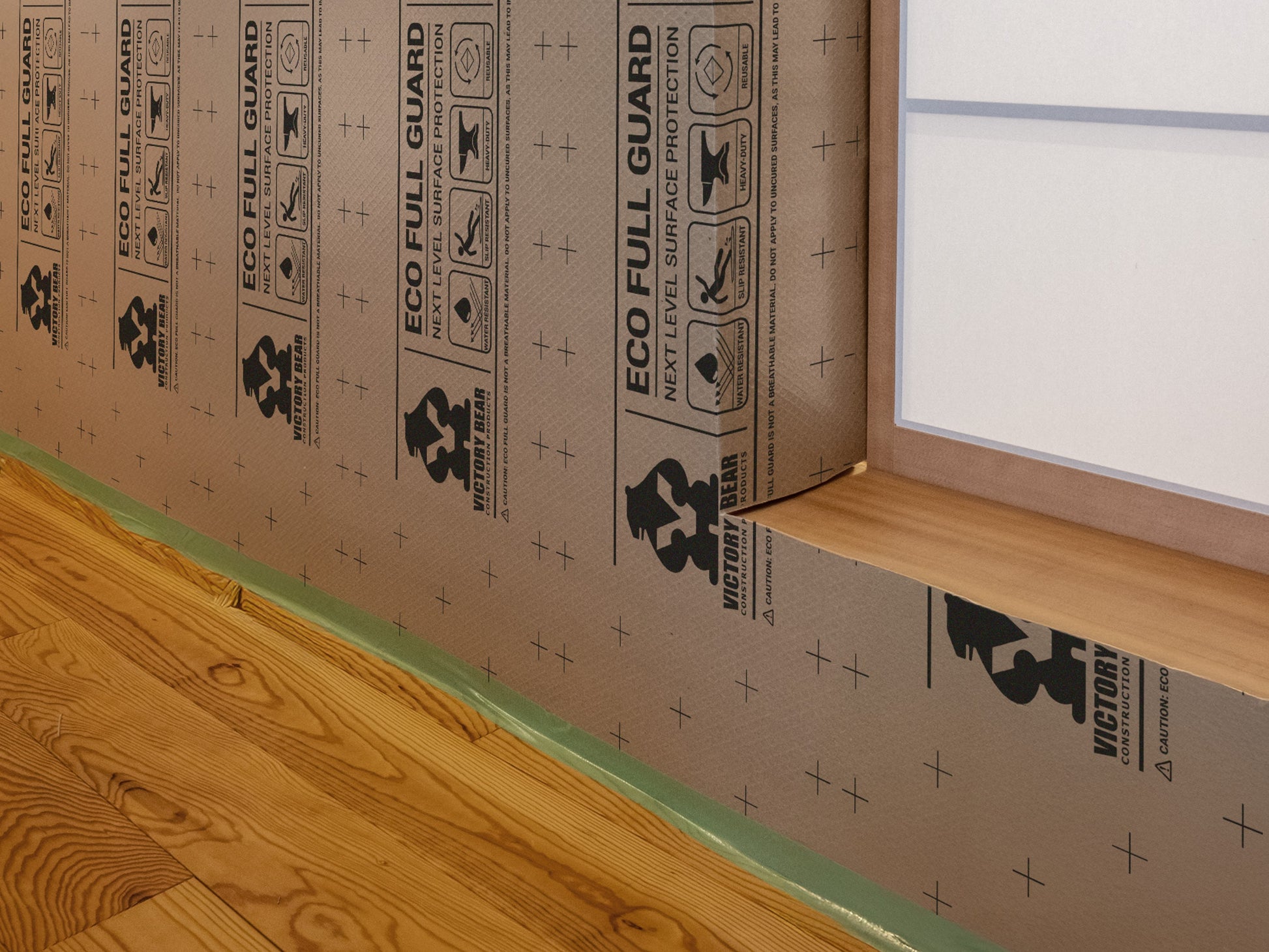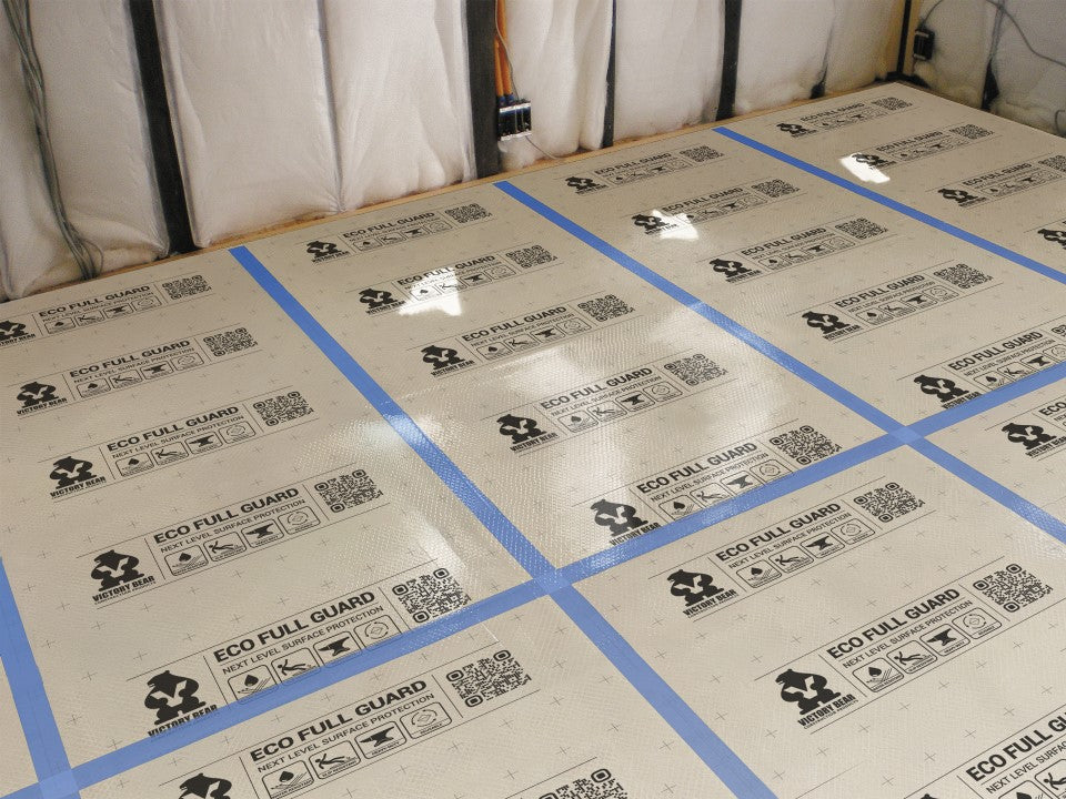 When it comes to protecting valuable surfaces, Eco Full Guard sets a new standard. Engineered to be one of the toughest, most versatile, and feature-rich protection solutions available, it delivers peace of mind on every project. A durable 3 mm (118 mil) profile combines an embossed, water- and damage-resistant top layer with a recycled core and a slide-resistant bottom layer. The result is a product built not only to shield against spills, scratches, and impacts, but also to provide reliable, reusable performance across multiple jobs. Protect your walls, floors, cabinets, furniture, stairs, or any other surface that needs protection during your projects. With Eco Full Guard, your surfaces stay safe, your projects run smoother, and your investment goes further.